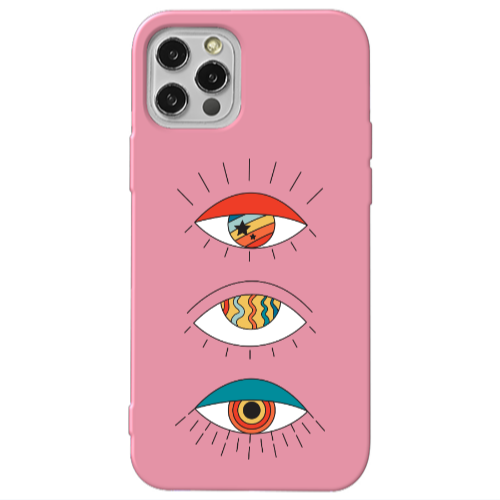 Θήκη Apple iPhone 12 Pro Max 3 different eyes Pink Colored Silicone TPU