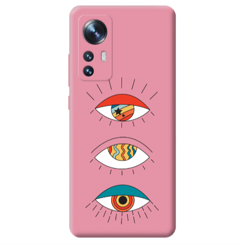 Θήκη Xiaomi Mi 12 3 different eyes Pink Colored Silicone TPU