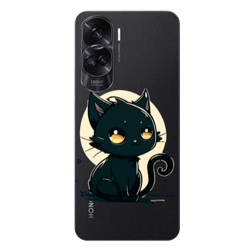Θήκη Honor 90 Lite 5G Black Cat Transparent Silicone TPU