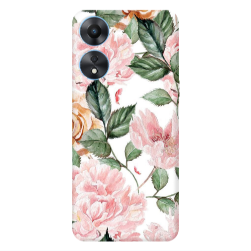 Θήκη Oppo A 98 Pink rose and laves Transparent Silicone TPU