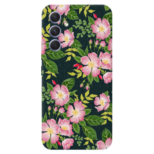 Θήκη Samsung A26 Pink flowers green laves Yellow Colored Silicone TPU