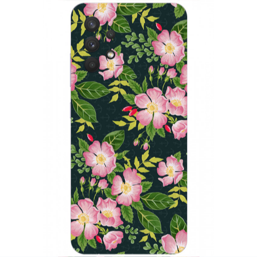Θήκη Samsung A32 4G Pink flowers green laves Dark blue Colored Silicone TPU