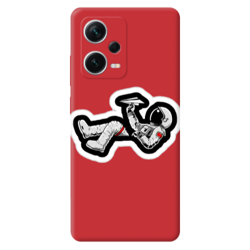 Θήκη Xiaomi Poco X5 Astronaut flies a plane Red Colored Silicone TPU