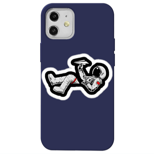 Θήκη Apple iPhone 12 Astronaut flies a plane Dark blue Colored Silicone TPU