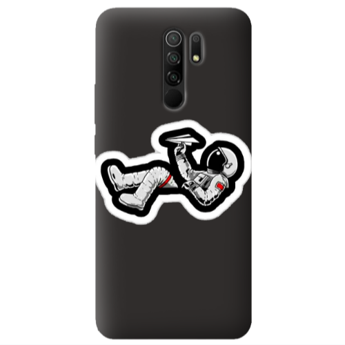 Θήκη Xiaomi Redmi 9 Astronaut flies a plane Black Colored Silicone TPU