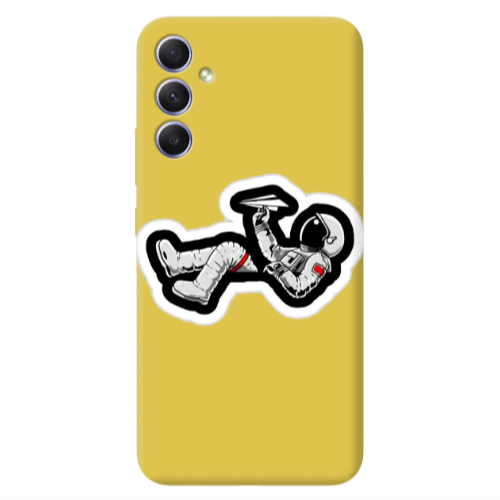 Θήκη Samsung A34 Astronaut flies a plane Yellow Colored Silicone TPU