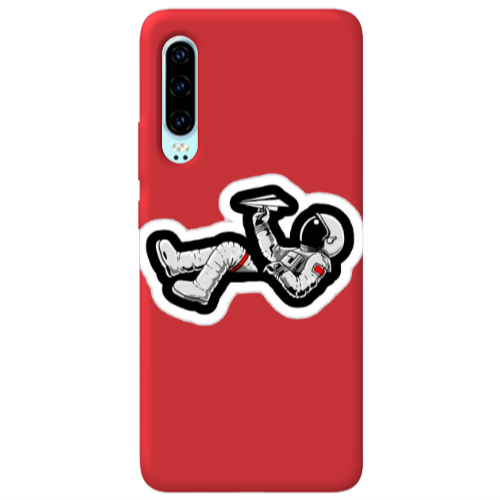 Θήκη Huawei P30 Astronaut flies a plane Red Colored Silicone TPU