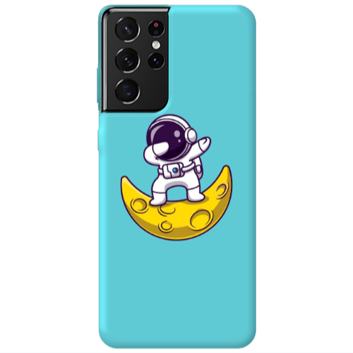 Θήκη Samsung S21 Ultra Astronaut on the moon Turquoise Colored Silicone TPU