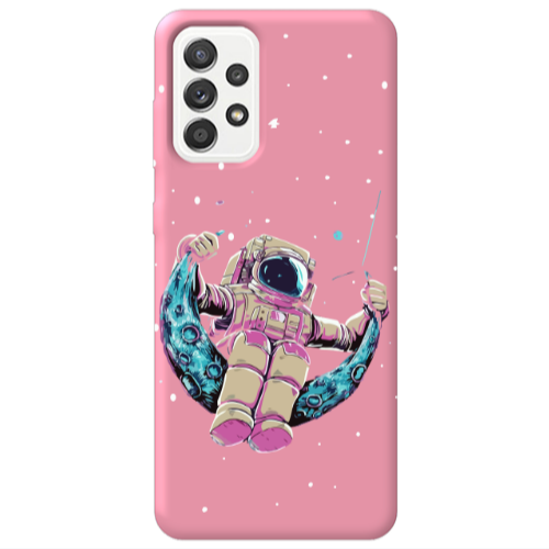 Θήκη Samsung A13 4G Astronaut swinging on the moon Pink Colored Silicone TPU