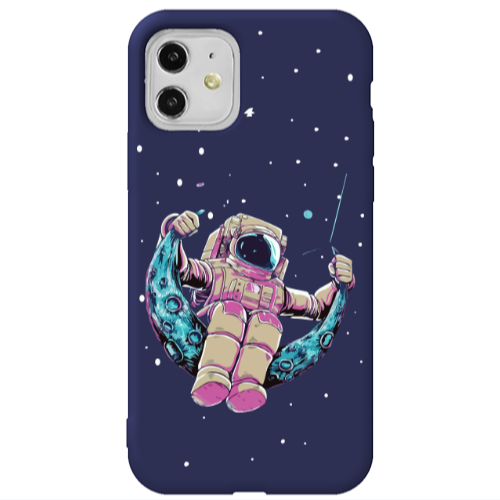 Θήκη Apple iPhone 11 Astronaut swinging on the moon Dark blue Colored Silicone TPU
