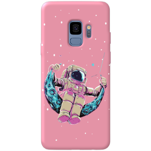 Θήκη Samsung S9 Plus Astronaut swinging on the moon Pink Colored Silicone TPU