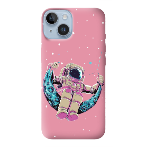 Θήκη Apple iPhone 14 Plus Astronaut swinging on the moon Pink Colored Silicone TPU
