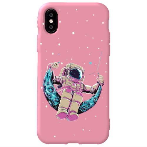 Θήκη Apple iPhone Xs Astronaut swinging on the moon Pink Colored Silicone TPU