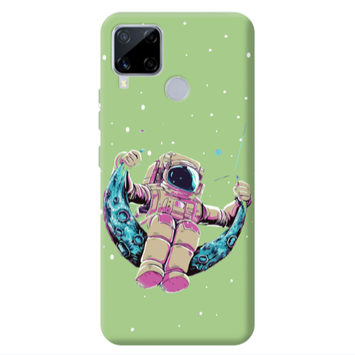 Θήκη Realme C25S Astronaut swinging on the moon Light Green Colored Silicone TPU