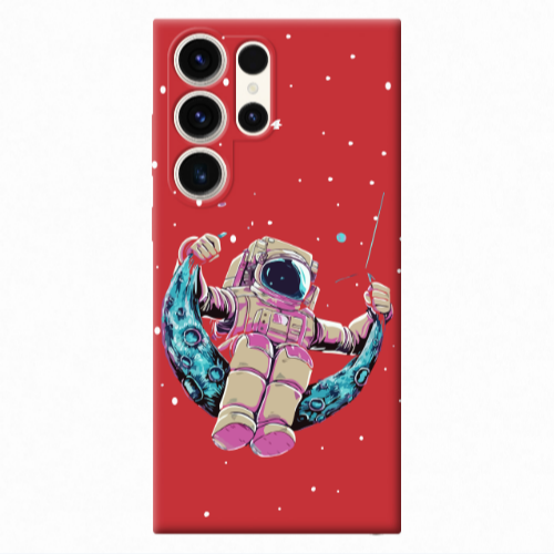 Θήκη Samsung S23 Ultra Astronaut swinging on the moon Red Colored Silicone TPU