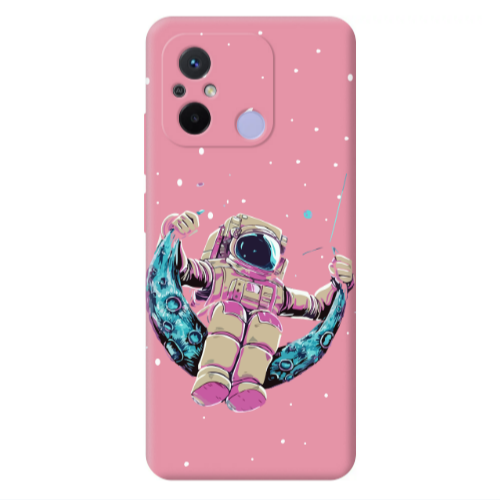 Θήκη Xiaomi Redmi 12C Astronaut swinging on the moon Pink Colored Silicone TPU