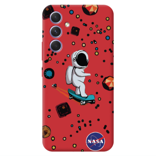 Θήκη Samsung A35 Astronaut with skateboard Red Colored Silicone TPU