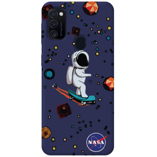 Θήκη Samsung M21 Astronaut with skateboard Dark blue Colored Silicone TPU