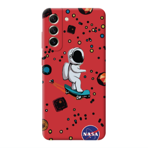 Θήκη Samsung S21 FE Astronaut with skateboard Red Colored Silicone TPU