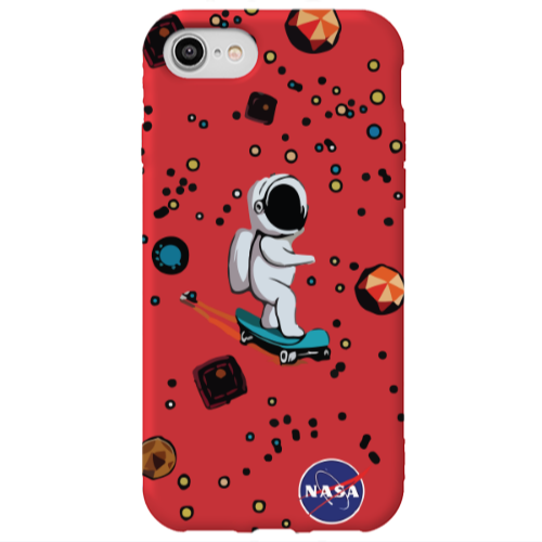 Θήκη Apple iPhone SE 2020 Astronaut with skateboard Red Colored Silicone TPU