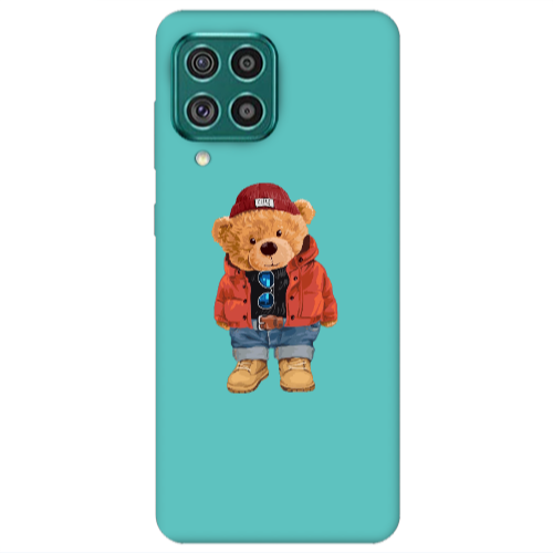 Θήκη Samsung A22 4G Bear in a hat Turquoise Colored Silicone TPU