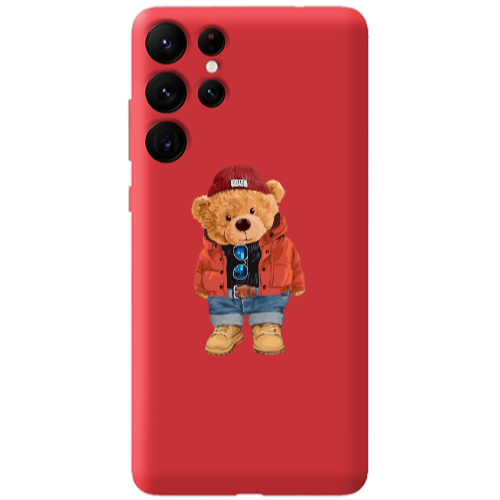 Θήκη Samsung S22 Ultra Bear in a hat Red Colored Silicone TPU