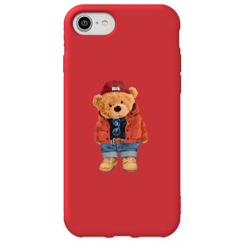 Θήκη Apple iPhone 7 Bear in a hat Red Colored Silicone TPU