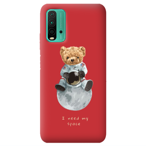 Θήκη Xiaomi Poco M3 Bear in space Red Colored Silicone TPU