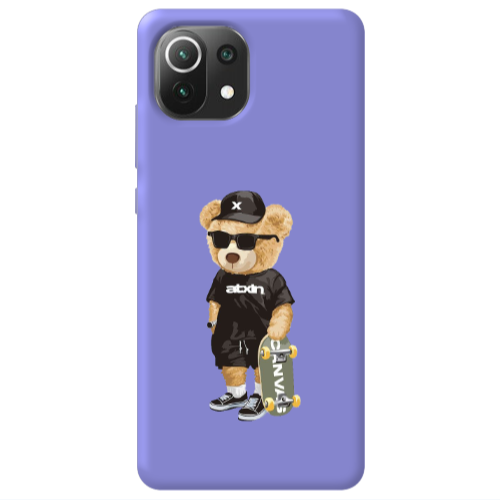 Θήκη Xiaomi Mi 11 Lite Bear with glasses Purple Colored Silicone TPU