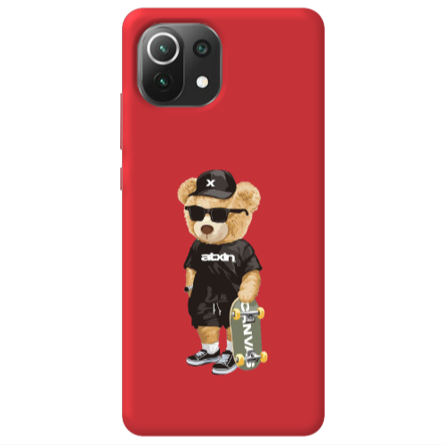 Θήκη Xiaomi Mi 11 Lite Bear with glasses Red Colored Silicone TPU