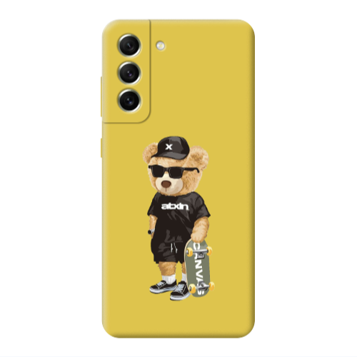Θήκη Samsung S21 FE Bear with glasses Yellow Colored Silicone TPU
