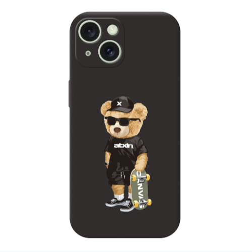 Θήκη Apple iPhone 15 Plus Bear with glasses Black Colored Silicone TPU