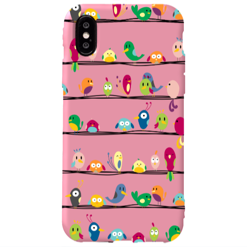 Θήκη Apple iPhone Xs Max birds Pink Colored Silicone TPU