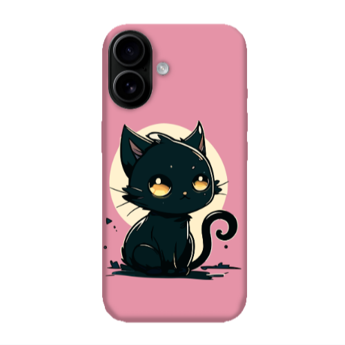 Θήκη Apple Iphone 16 Black Cat Pink Colored Silicone TPU