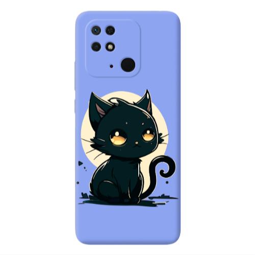 Θήκη Xiaomi Redmi 10C Black Cat Light Purple Colored Silicone TPU