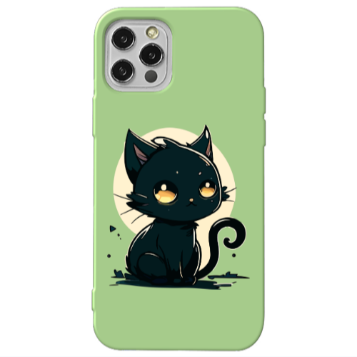 Θήκη Apple iPhone 12 Pro Max Black Cat Light Green Colored Silicone TPU
