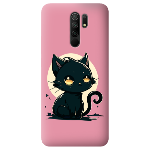 Θήκη Xiaomi Redmi 9 Black Cat Pink Colored Silicone TPU