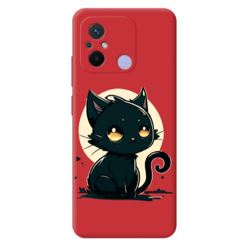 Θήκη Xiaomi Redmi 12C Black Cat Red Colored Silicone TPU