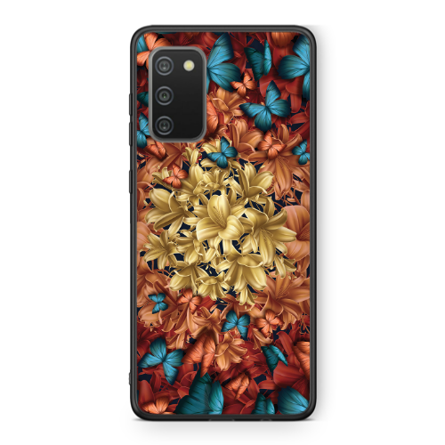 Θήκη Samsung A02s Blue butterflies Black Glossy