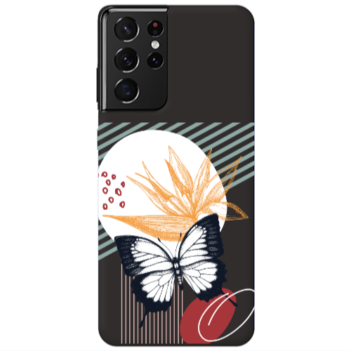 Θήκη Samsung S21 Ultra Butterfly Lines Black Colored Silicone TPU