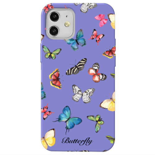 Θήκη Apple iPhone 12 Butterfly Mix Purple Colored Silicone TPU