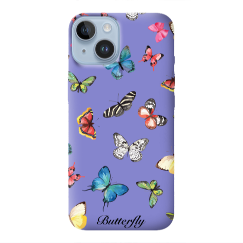 Θήκη Apple iPhone 14 Butterfly Mix Purple Colored Silicone TPU