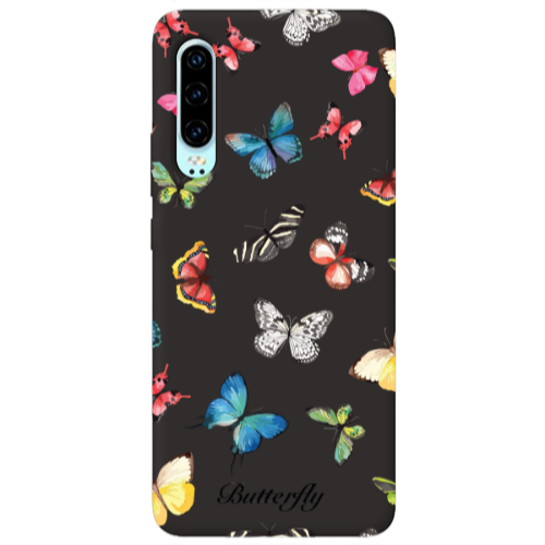Θήκη Huawei P30 Butterfly Mix Black Colored Silicone TPU