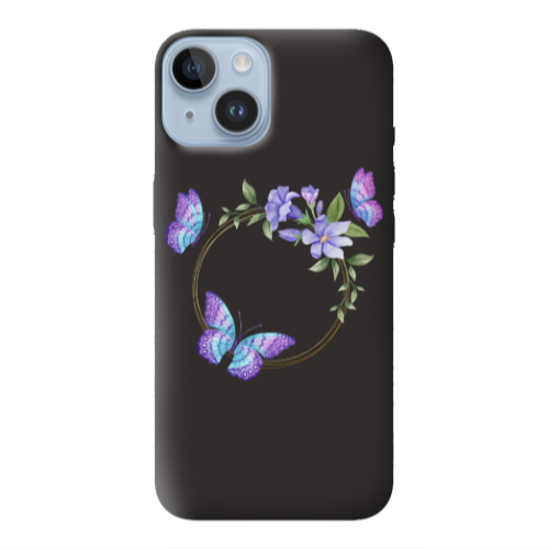 Θήκη Apple iPhone 14 Butterfly on the ring Black Colored Silicone TPU