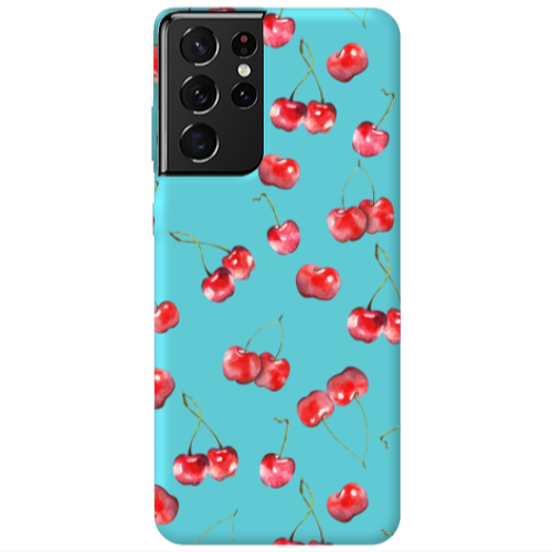 Θήκη Samsung S21 Ultra Cherries Turquoise Colored Silicone TPU