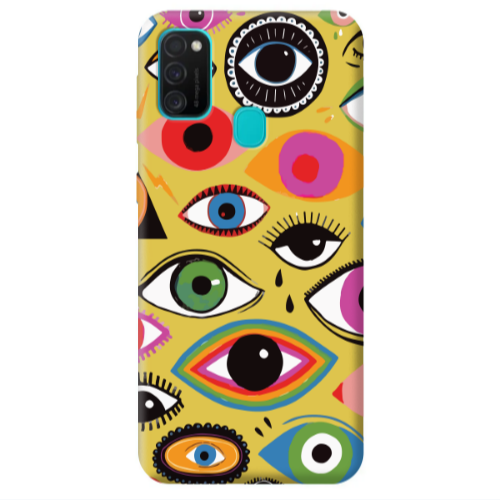 Θήκη Samsung M21 Colorful eyes Yellow Colored Silicone TPU
