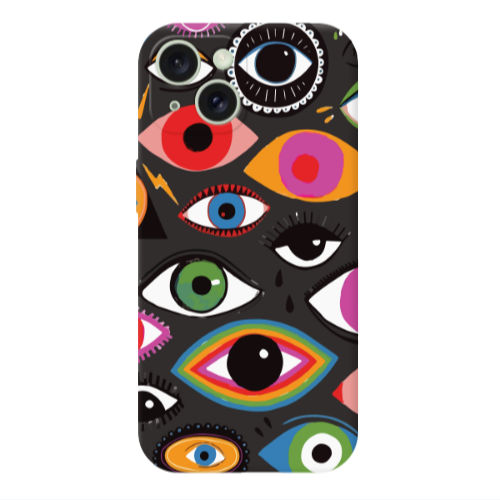 Θήκη Apple iPhone 15 Colorful eyes Black Colored Silicone TPU