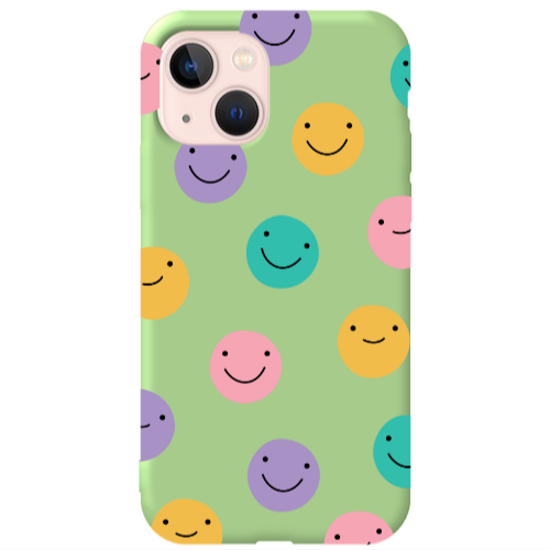Θήκη Apple iPhone 13 Colorful smiles Light Green Colored Silicone TPU