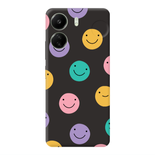 Θήκη Xiaomi Redmi 13C Colorful smiles Black Colored Silicone TPU