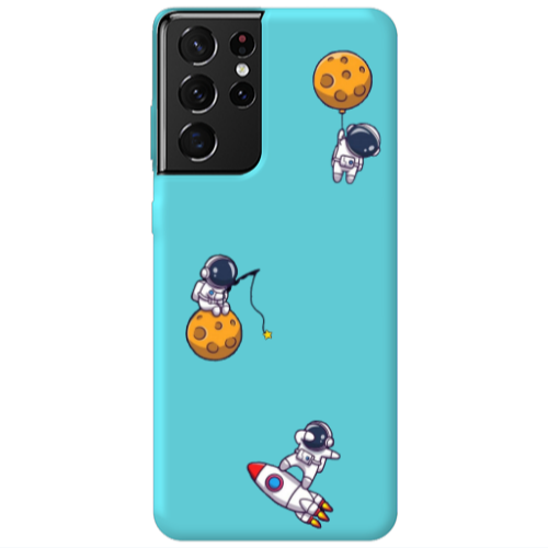 Θήκη Samsung S21 Ultra Cute astronauts Turquoise Colored Silicone TPU